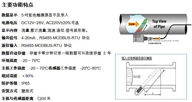 例如對應管道可以從頂部或者側面任意方便位置都可以安裝傳感器,對于敞開(kāi)的渠道溝槽測量場(chǎng)合特別是不能停水的情況下也可以很方便安裝傳感器,如果采用便攜表隨機測量那是更有利的。
